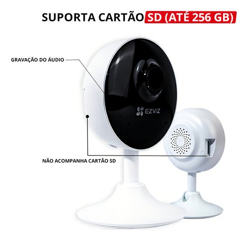Con un diseño compacto y elegante en color blanco, la Ezviz C1C se adapta a cualquier entorno interior. Su capacidad de almacenamiento de hasta 256 GB asegura que se puedan guardar grabaciones prolongadas, ofreciendo una solución completa para la vigilancia continua.