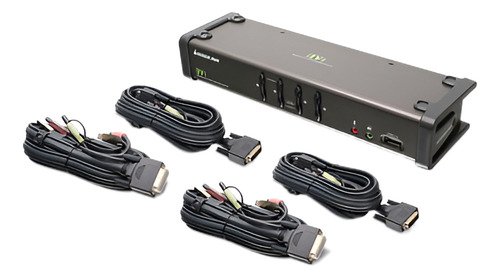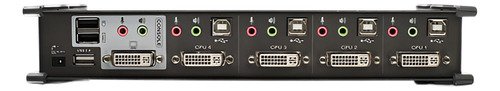 -Una consola controla 4 computadoras. Conmutación independiente (asíncrona) de KVM y periférico. Puertos USB / audio
